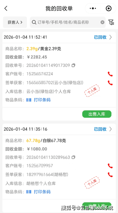 云当铺SaaS系统构建完善的客户档案管理体系,自动留存客户消费偏好、寄售习惯等核心数据,风险客户可触发系统提示。基于数据支撑,系统可实现客户物品到期提醒;商品售出后实时推送通知,提升客户信任度;针对沉睡客户定向推送优惠活动,唤醒复购潜力。通过精细化客户运营,打造有温度的服务体验,依托口碑传播实现客户裂变,无需高额广告投入即可完成市场扩张,积累可持续发展的核心客户资产。