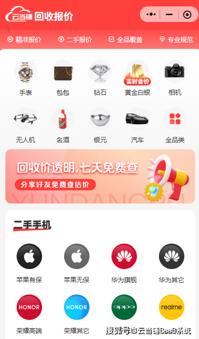 其实创业的核心,是把钱花在刀刃上、把精力用在核心业务上,一套高效的经营工具,便是突破困境的关键。云当铺SaaS系统结合多年的寄售行管理经验,以全流程数字化解决方案,从基础物品的估值(涵盖手机数码、钻石包表、贵金属、烟酒、汽车等寄售行常见品类)、到线上办单、客户信息管理、到更深层的成本控制、效率提升到风险规避、客户运营,全方位助力创业者轻装上阵,既实现商业价值的突破,也能为创业者提供更稳定的运营模式。
