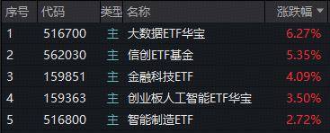 盘面上,泛科技集体猛攻,计算机板块领涨两市,超八成权重布局于计算机板块的信创ETF基金(562030)场内价格最高飙涨超9.5%,一度领涨全市场ETF;AI产业链热度延续,双线布局“AI应用+算力”的创业板人工智能ETF(159363)场内收涨3.5%,重点布局国产AI产业链的科创人工智能ETF华宝(589520)场内收涨2.49%;互联网券商、金融IT双双发力,金融科技暴力猛攻,百亿金融科技ETF(159851)场内收涨4.09%,再创阶段新高。