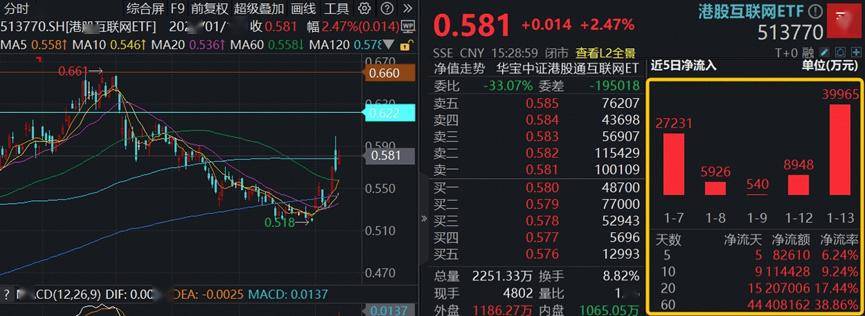 主线地位坚挺,港股AI延续开年以来的火热行情。港股AI核心资产——港股互联网ETF(513770)高开高走,场内价格一度涨逾3%,收涨2.47%,日线重回所有均线上方,短期趋势或较强。