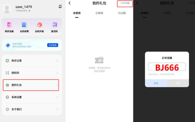 更值得注意的是,前往小六云手机的口令兑换处输入“BJ666”,还能领取免费使用时长。