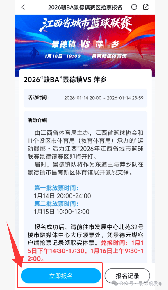 1月18日景德镇队VS萍乡队!“赣开云体育- 开云体育官方网站- APP下载BA”门票开抢→