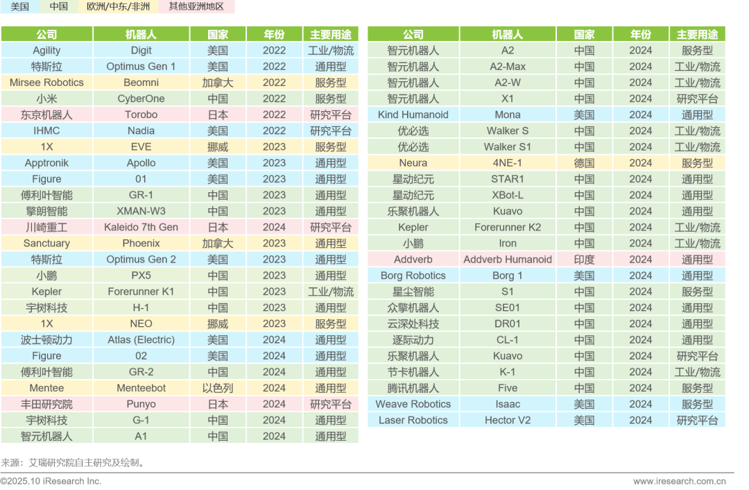 (下图是自2022年以来主要人形机器人发布情况,图片来自艾瑞咨询官方微信。)