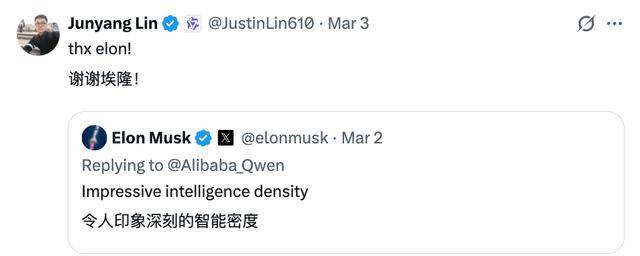 也大概是唯一一个能在英文社交媒体上持续跟全球开发者社区互动,每天在X上发推、回issue、跟全球开发者对线日晚,林俊旸还带队发布了Qwen3.5小尺寸模型,连马斯克也点赞转发。