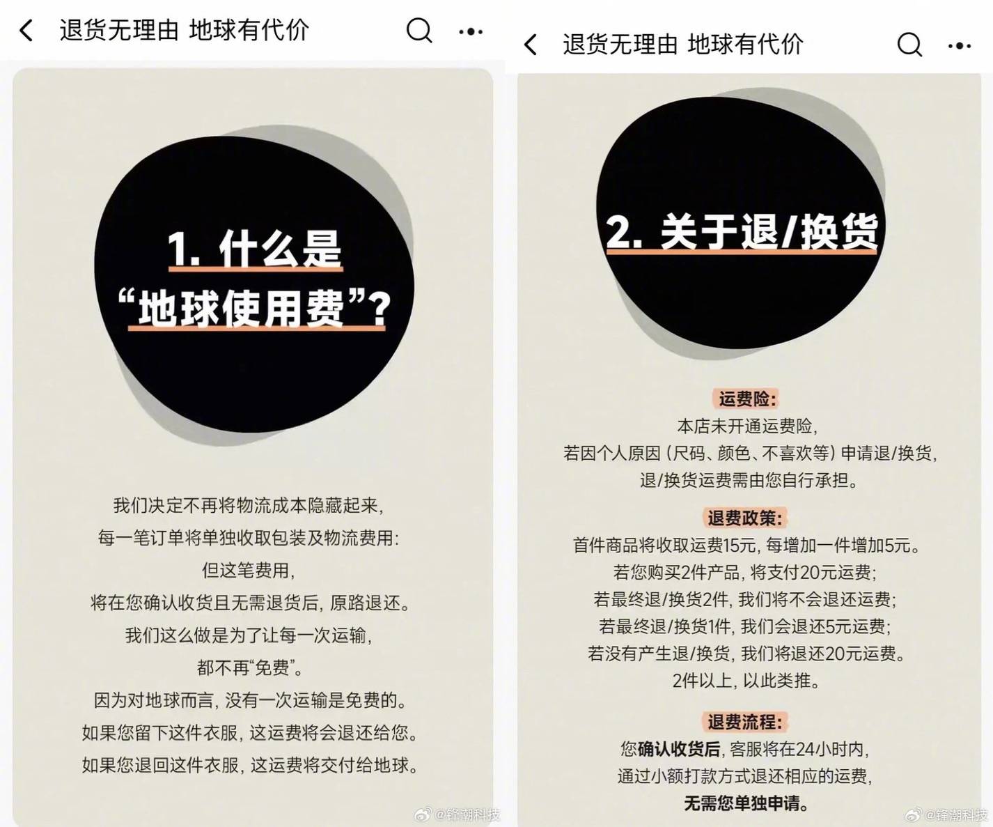若消费者最终确认收货且不退换货,这笔运费将在 24 小时内原路退还;若发生退换货,运费则不予退还,并将全额捐赠给 SEE 基金会旗下「1% 地球税」环保公益项目。