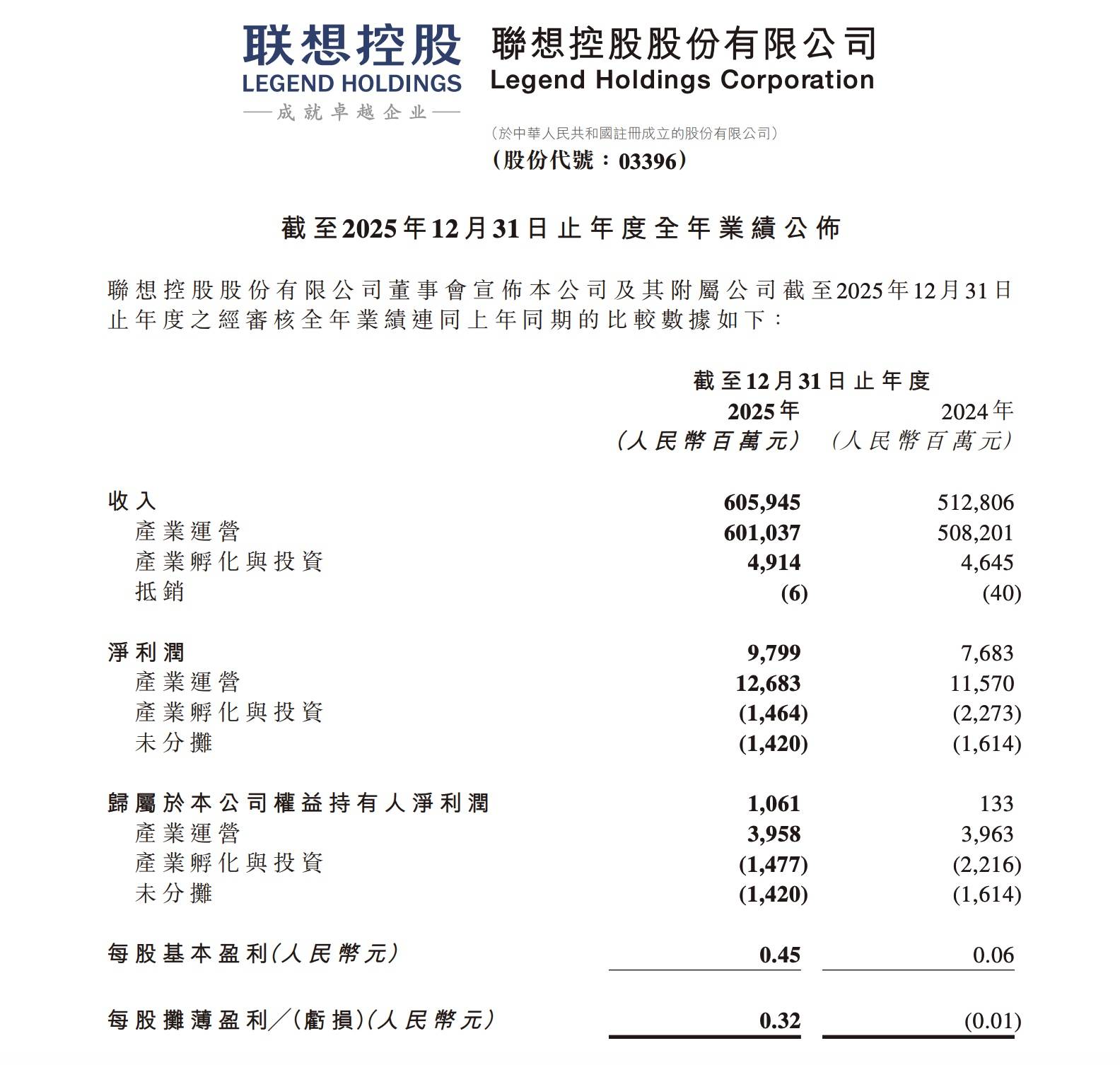 全年收入 6060 亿元,同比增长 18%,首次突破六千亿元大关,创历史新高;净利润 98 亿元,同比增长 28%;归属于公司权益持有人净利润 10.6 亿元,同比大幅增长 698%。
