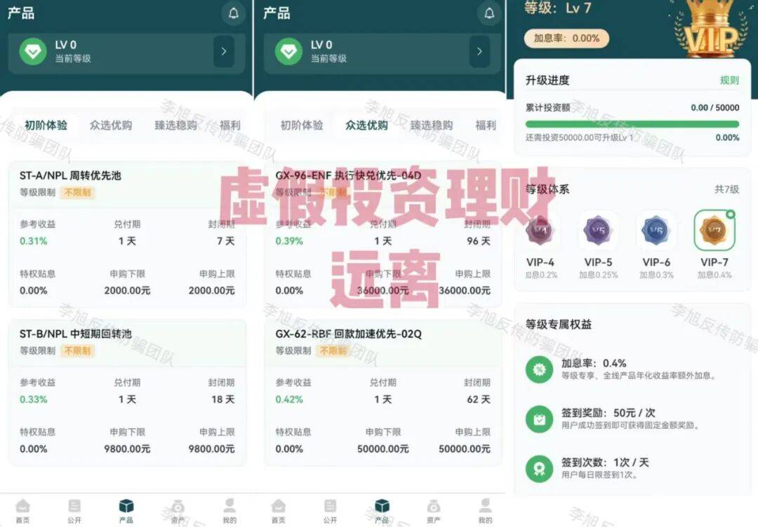 标榜“国央企”背景,套用正规企业信息制作假冒的软件。打着“不良资产投资”的名义推出虚假的投资产品。