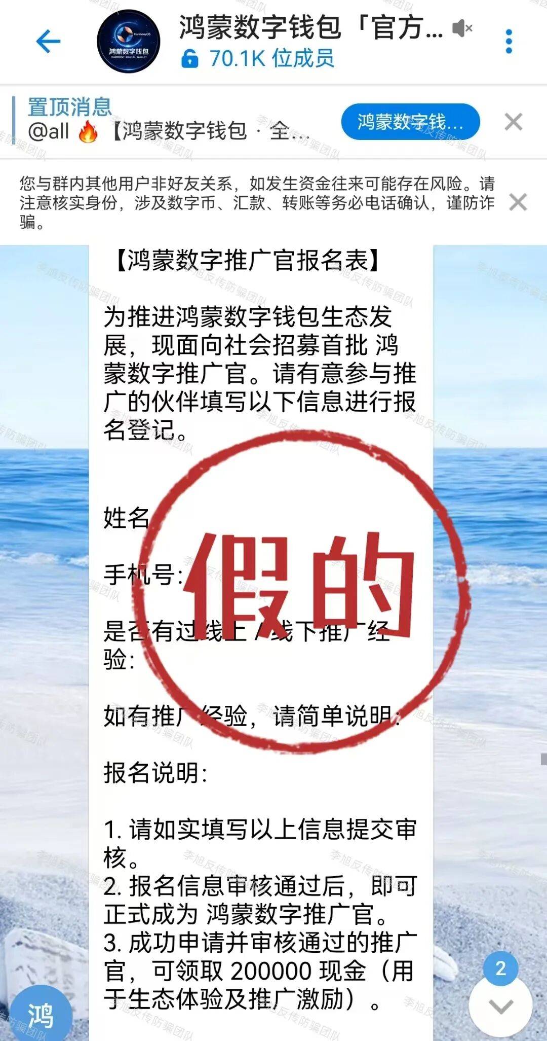 最近刚刚冒头的新项目,打着“华为集团”的名义招募所谓的“推广官”,声称4月10日APP上线后,参与者就能获得高额回报,以此吸引大家填写登记表,套取用户信息。