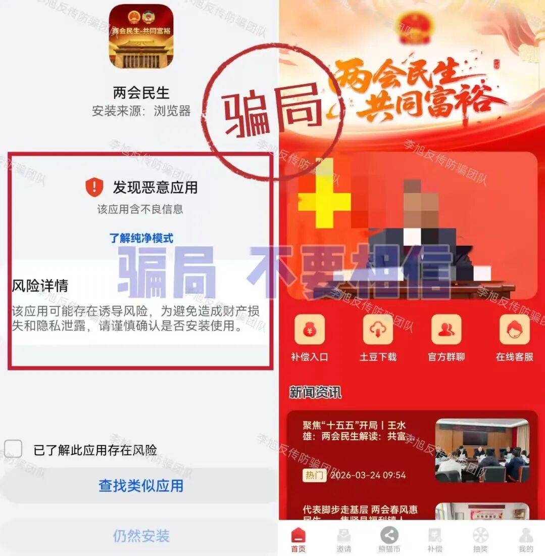 一个名头如此响亮的项目,软件却在应用商店查找不到,只能通过某境外聊天软件中的陌生链接下载,安装时提示未通过备案且为恶意应用。