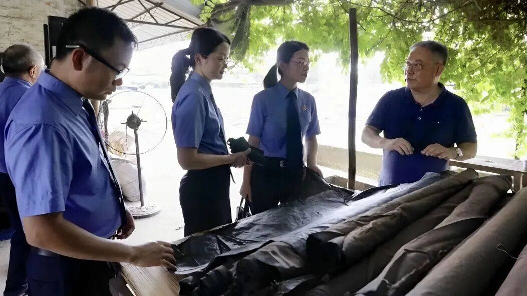 从最基础的功课做起。佛山市检察院公益诉讼检察部门检察官代表黄洁回忆:“多次和职能部门、行业协会座谈,走访晒莨厂、染整厂、销售门店,还拜访了国家、省、市三级非遗代表性传承人。”大量调研后,问题逐渐清晰——侵权主要在两头:一是面料成分不达标,不是100%桑蚕丝,却打着香云纱的名号;二是不使用本地河泥进行染整,却仍以地理标志产品自居。