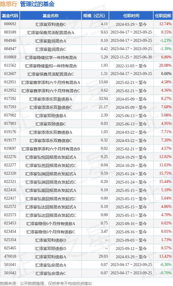 汇添富双盈回报一年持有债A基金经理变动:增聘吴江宏开云体育- 开云体育官方网站- APP下载陈思行为基金经理