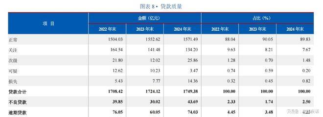 数据显示,截至2024年末,山西银行的不良贷款率升至2.50%,较2023年末的1.74%增加76个基点;不良贷款余额为43.69亿元,较2023年末的30.02亿元增加13.67亿元,增幅超过45%。