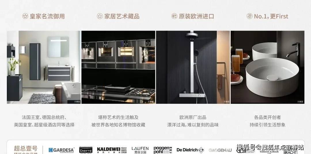 全屋精装引入诸多全球一流品牌,功能性的满足外,更看见德国皇帝、奥地利女王、超星级酒店的同等选择,世界各地知名博物馆的收藏品牌。