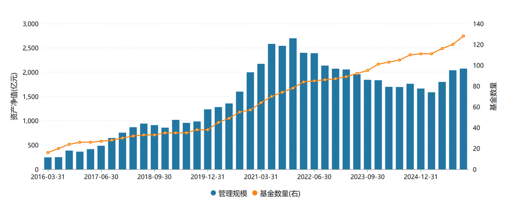 巅峰之后,其规模持续萎缩。截至2025年末,东方红资管管理规模降至约2073亿元,较峰值蒸发近600亿元,行业排名滑落至40位左右(数据截至2025年12月31日,来源:Wind)。