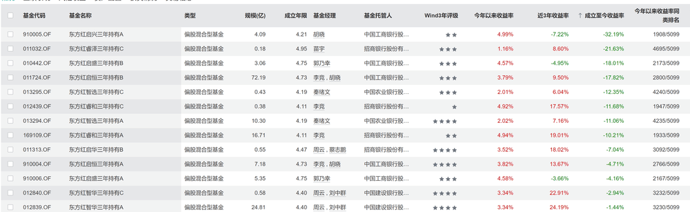 东方红多只三年持有期产品至今仍存在大额亏损。数据来源:Wind,截至2026年1月9日。