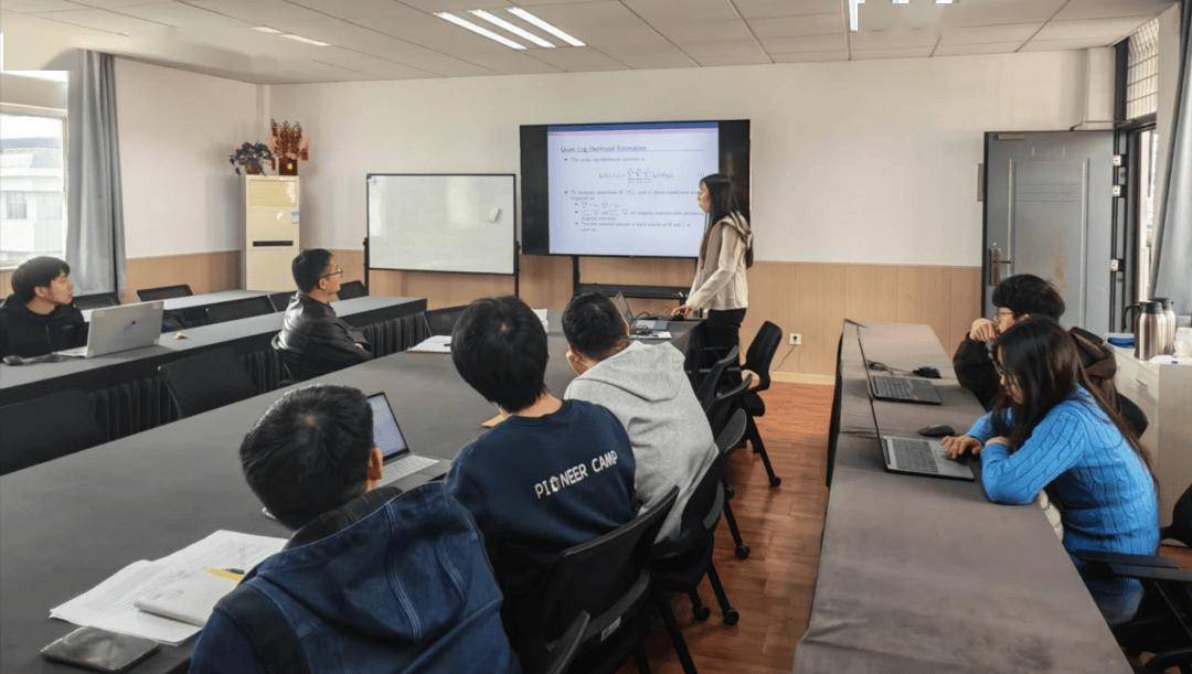 二是定期开展研究生学术沙龙,推动研究生尤其是博士生开展学术研究与学术交流,并邀请统计学科教师进行深入点评与指导,提升研究质量;同时,以全流程严格的过程管理夯实学生科研功底。博士生张彤围绕大维广义因子模型,与学院青年教师和博士生进行交流研讨。